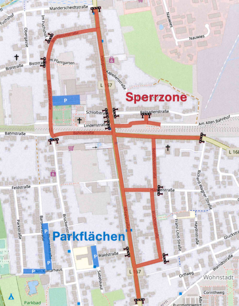 Die Straße „Am alten Bahnhof“ ist im oben genannten Zeitraum für den gesamten Verkehr gesperrt.