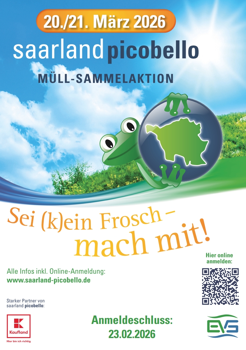 Am 20. und 21. März 2026 ist es wieder soweit: Das Saarland soll picobello sauber werden! Der Entsorgungsverband Saar (EVS) lädt erneut alle Menschen im Saarland ein, am landesweiten „Frühjahrsputz für die Umwelt“ im Rahmen der Kampagne „saarland picobello“ mitzuwirken.